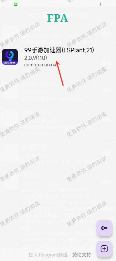 1.这里需要用到fpa框架。进入fpa框架软件,点击你要激活的软件(例如99手游加速器)。