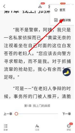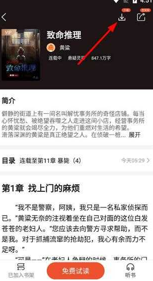 2.打开需要下载的小说,点击页面,上方出现下载标识,点击即可下载;