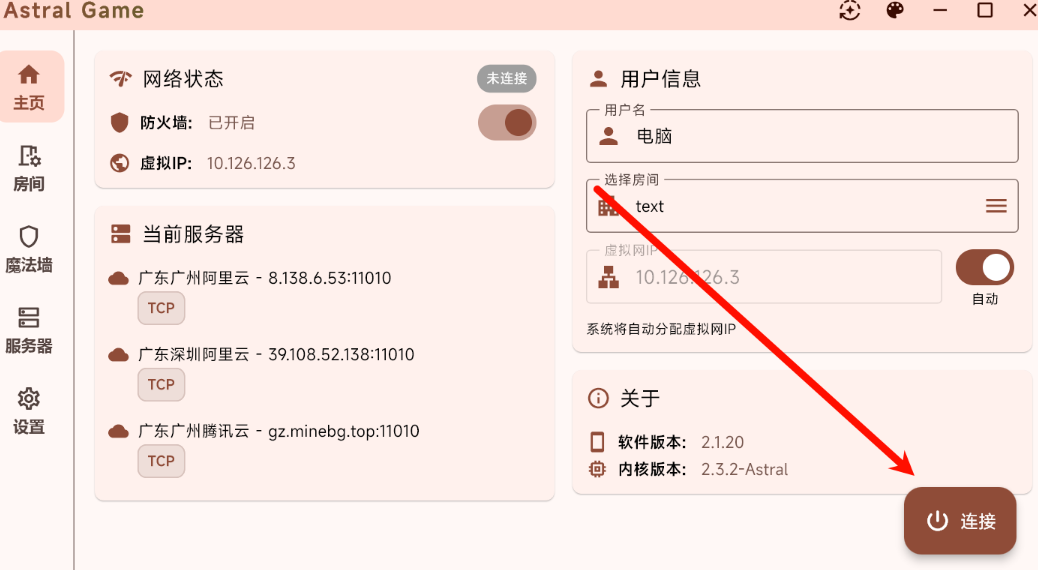 1、运行astral联机软件最新版本,点击链接;