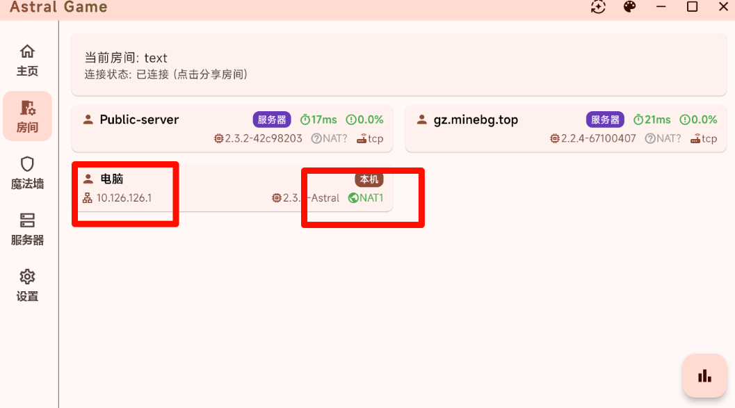 连接成功后,返回房间页面,您应该能看到: