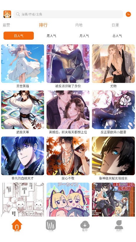 1.进入首页,可以看到漫画按照不同类型(如日漫、最赞、人气等)分类,选择自己感兴趣的类型浏览。