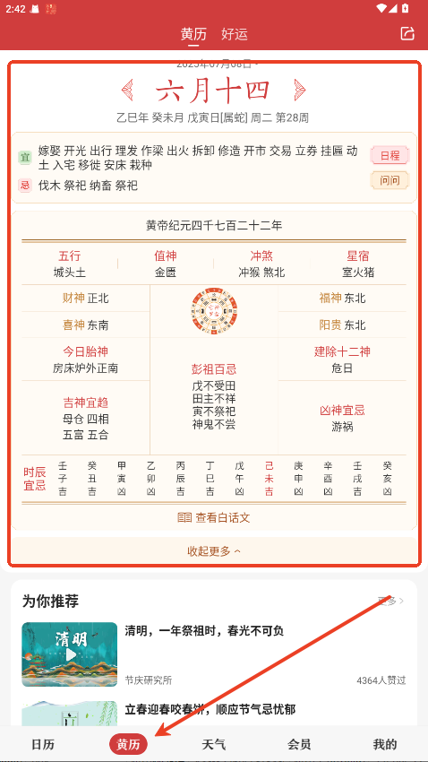 在底栏菜单内点击黄历,即可看每日属相。