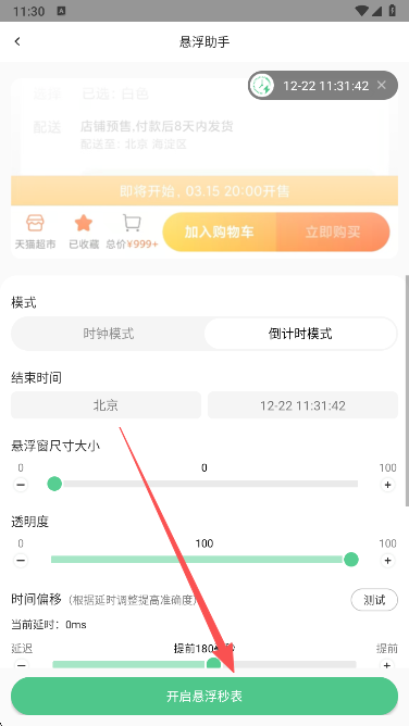 2、点击开启悬浮秒表