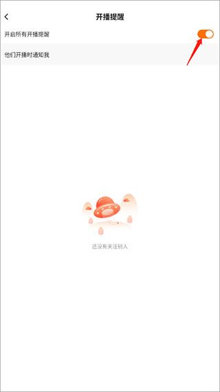 4.进入开播提醒页面,然后把开启所有开播提醒的按钮打开即可。