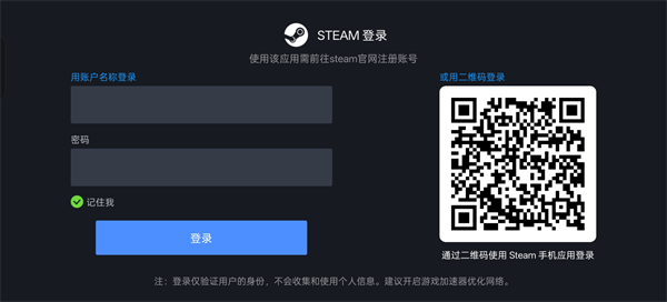 点击绑定Steam账号,输入Steam账号密码或使用Steam APP扫码进行验证登录。