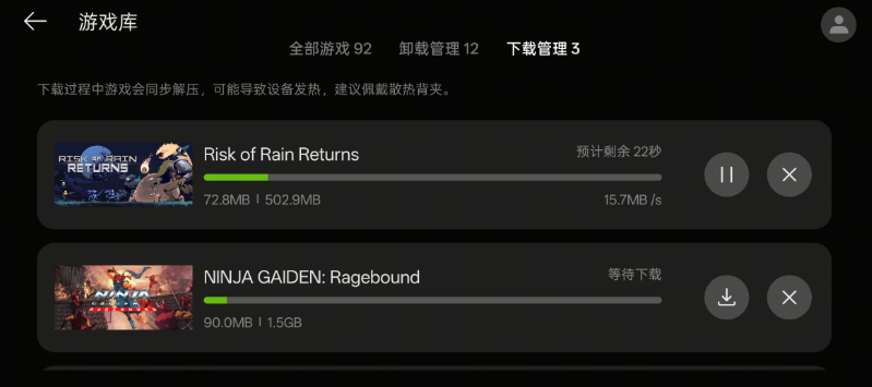 PC掌玩进行游戏下载时,会同时进行解压安装。整个过程持续时间久,可能导致设备发热。