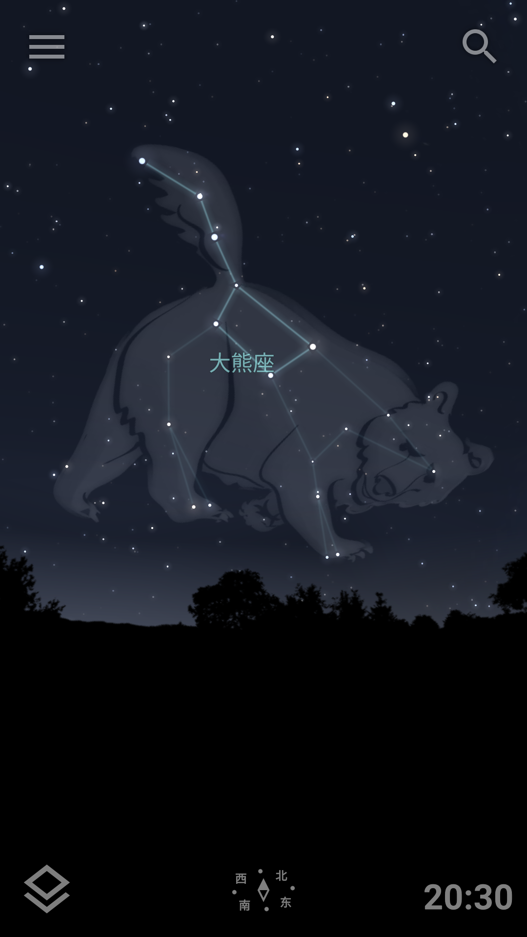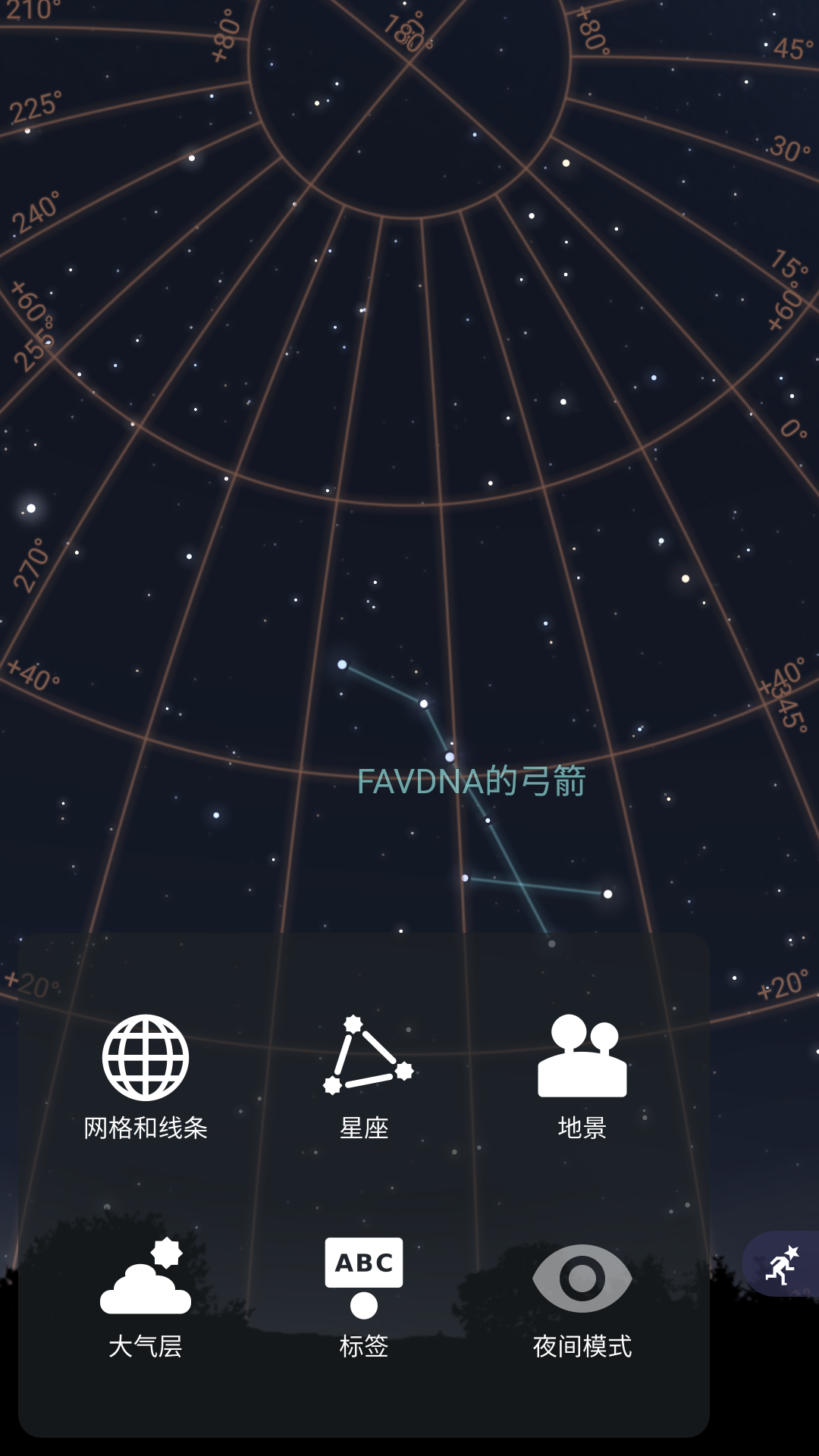 5、长按星座按钮可选择星座的标签与图纸,可更好的观测到各星座