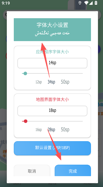 4、根据实际需求去设置应用程序字体和地图界面字体的大小部分。