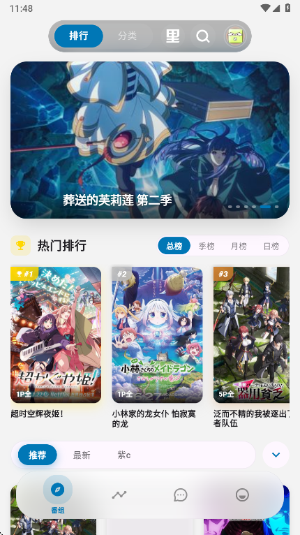 1、打卡Baka软件,在推荐界面,通过推荐、排行、搜索等方式,找到并点击喜欢的番剧