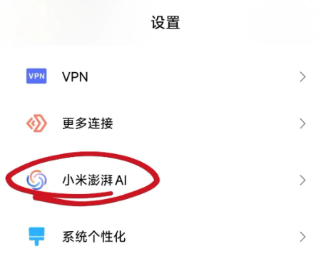 首先,打开设置,点击小米澎湃AI