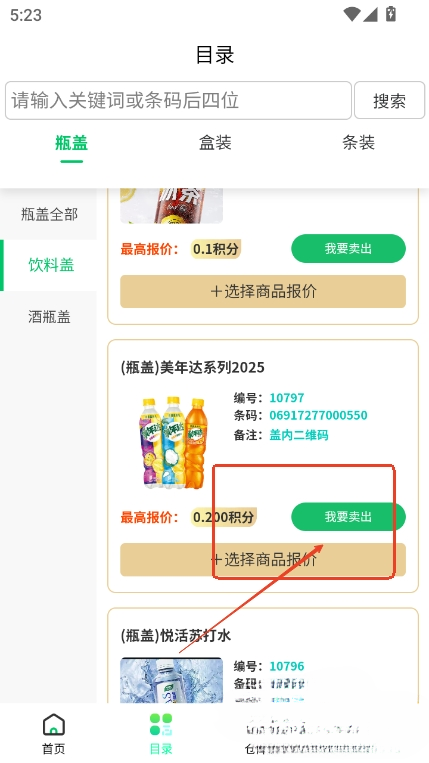 3、然后根据需求,选择相对应的商品,点击【我要卖出】。