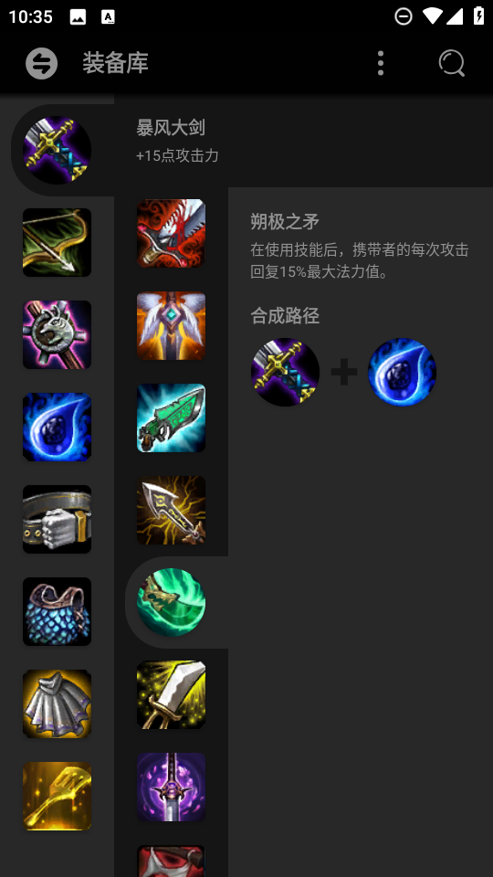3、在装备库,可以任意浏览不同装备合成之后的威力。
