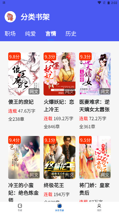 2、点击分类书架,能够获得全部类别。