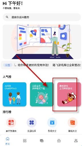1.打开软件,点击主界面的【精品小游戏】进入;