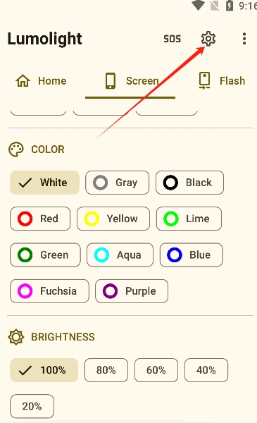 1、在软件首页您可以选择屏幕、两者或闪光效果,点击开关即可照明