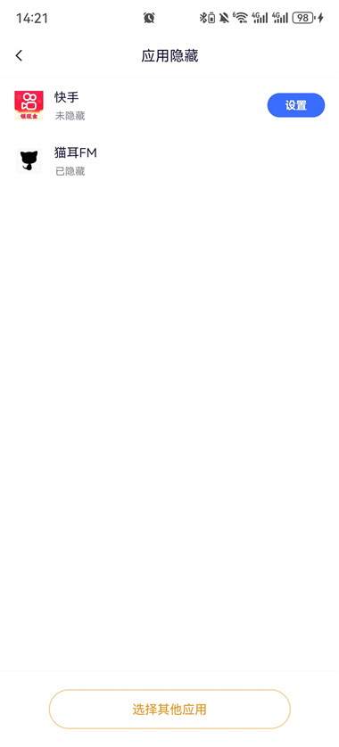 4、再一次点击隐藏应用即可发现已经添加在其中,点击设置;