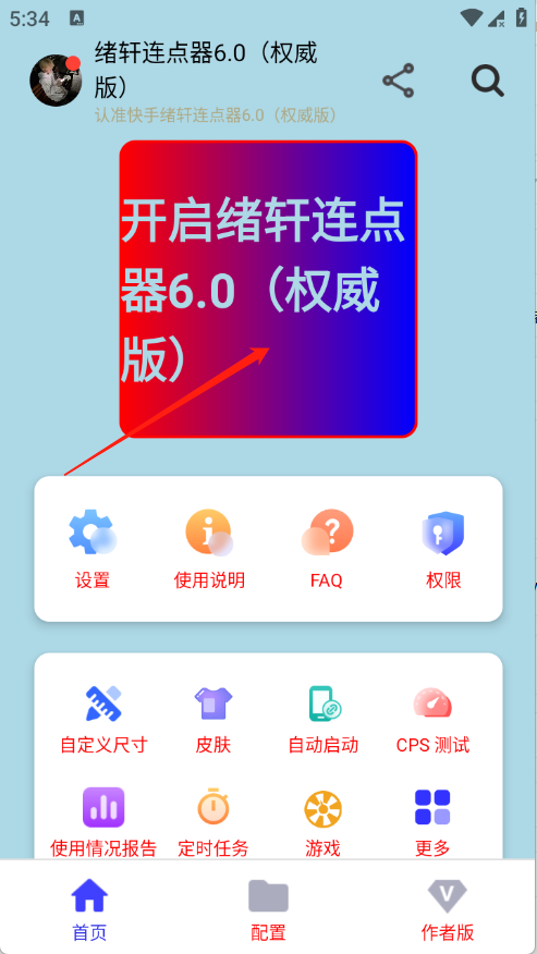 1、用户在本站下载绪轩连点器6.0app,开启相关的权限。