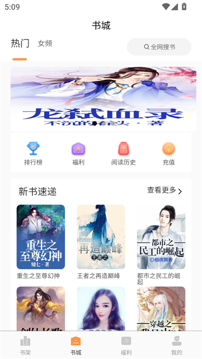 2.进入之后在书城可以看到各种类型的小说