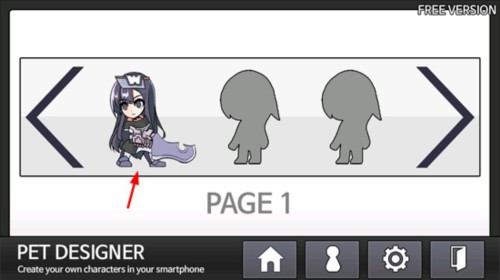 1.打开“PET DESIGNER”应用后,点击底部导航栏中的“人物图标”按钮(如红色箭头所示),进入角色选择界面。