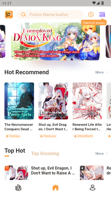 1.打开LoloBun应用后,进入首页,可浏览“热门推荐”和“畅销榜单”中的小说,通过封面和简介快速选择感兴趣的作品。