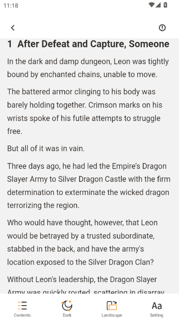 4.点击“Read Now”按钮开始阅读,进入阅读界面,可调整字体大小、背景颜色和阅读模式(滑动或滚动)。