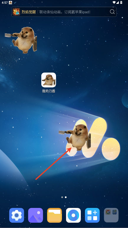 2.打开权限后,是没有app内部界面的。直接在桌面上拖动我的刀盾宠物即可。