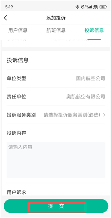 4、进入添加投诉界面后填写好信息后提交就可以了。
