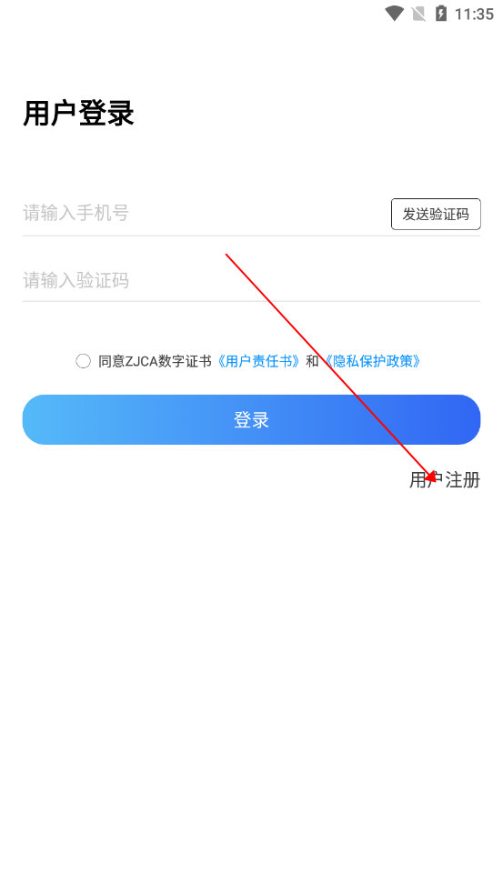 进来会看到登录界面,点击用户注册