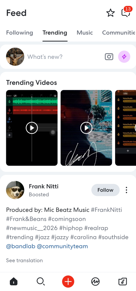 BandLab手机版是一款专业且免费的轻量型大众化全平台数字音乐创作合作交流云服务平台。它专为音乐人打造,软件体积小巧,UI简洁。拥有完整音乐制作水平与强大编辑工具,能一键在线创作、记录存储音乐灵感片段,可编曲、录音、作曲、混音等。支持邀请他人加入创作,通过内置编辑器完成多音轨编辑,利用管理视图追踪历程,分享歌曲获反馈,还能与粉丝互动。其特色众多,如可创作音乐点子、记录灵感、分享互动等,功能丰富,像有16轨混音编辑器、多种虚拟乐器和效果预设等。
