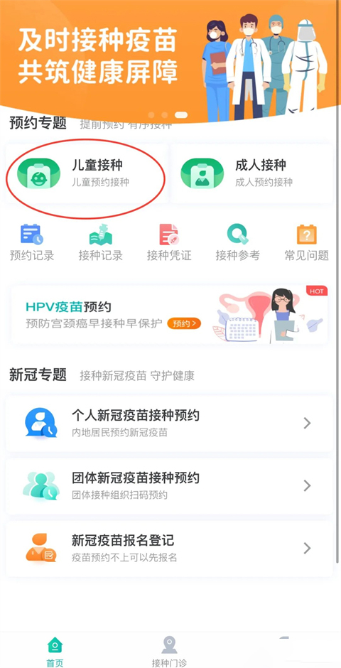 2、填写完成之后就可以返回首页点击hpv疫苗预约。