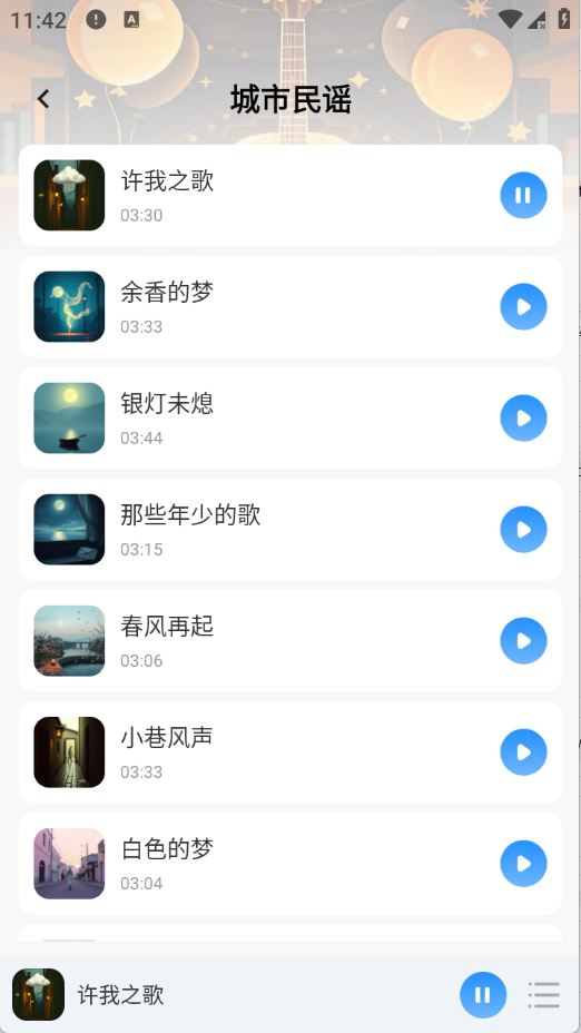 3、点开需要的音乐资源类型,小编这里以城市民谣为例。