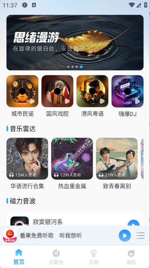 2、首页为用户推荐了热门的音乐资源类型。
