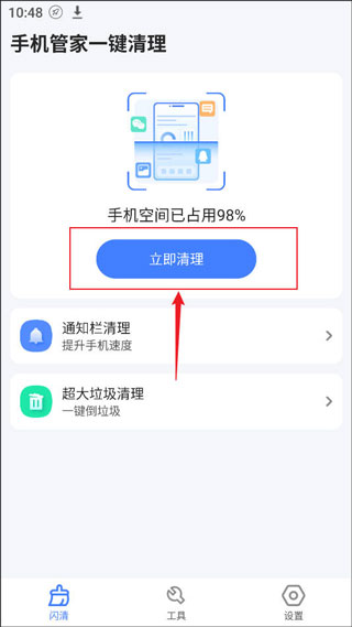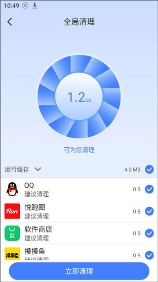 2、然后手机管家一键清理app就会对你的手机去全盘扫描