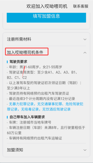 3、查阅平台列出的司机准入标准,包括驾龄要求、车辆年限、无犯罪记录等基本从业条件说明。