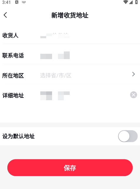4、最后输入地址详细信息,如果为常用地址建议设置为默认地址