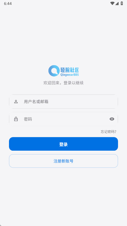 1、打开轻腕社区app,输入账号和密码后点击登录