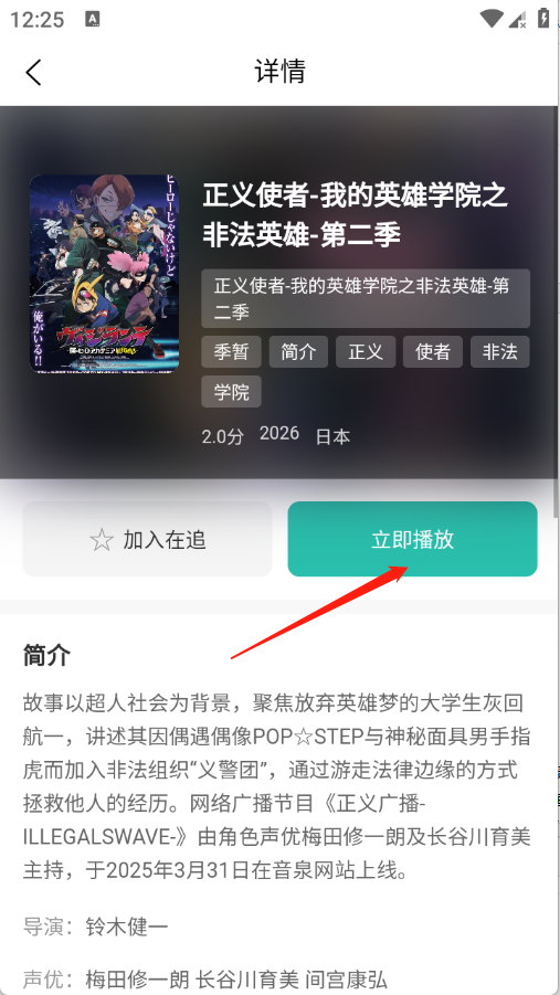 4、点开想看的动漫进入详情页,点击立即播放。
