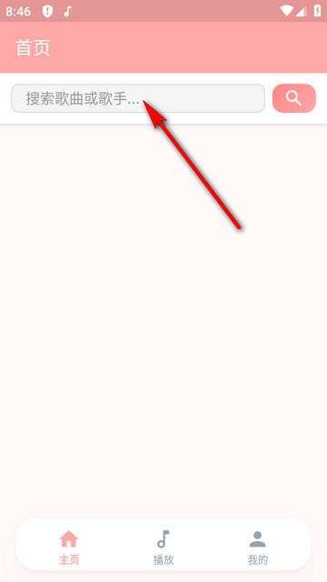 1、打开JunZiMusic软件,点击最上方搜索框,输入歌曲或歌手名称后点击搜索