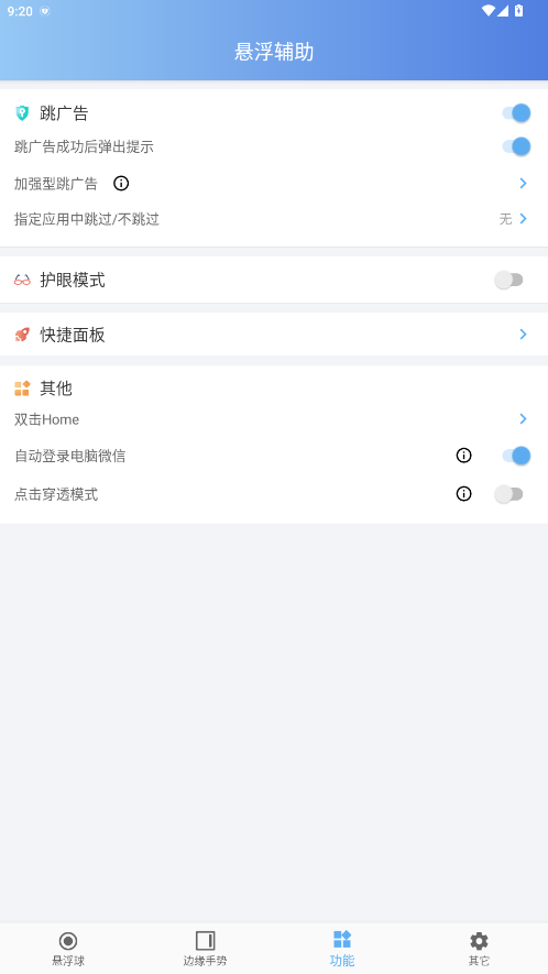 3. 功能丰富多样,有炫酷悬浮球、超多边缘手势、区域截屏、智能隐藏、快捷面板等,还可配置各种扫一扫入口应用等动作。