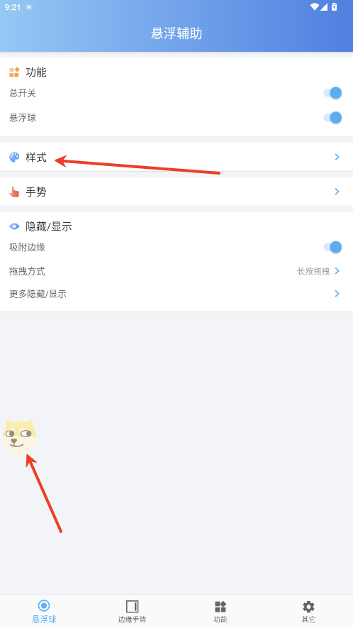 2.屏幕会出现一个悬浮球,也可以进入样式内自定义喜欢的悬浮球。