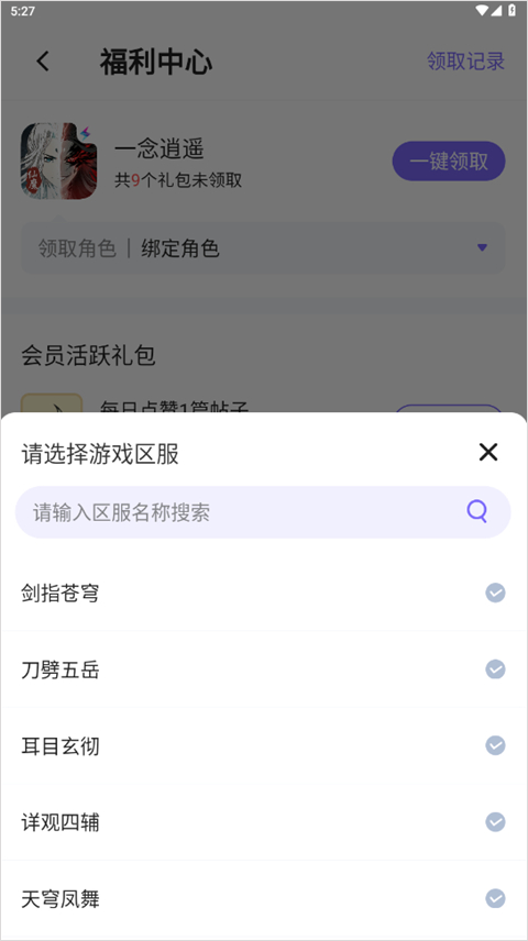 3、在页面底部找到“会员礼包”选项,绑定您的游戏角色并选择需要领取的礼包。