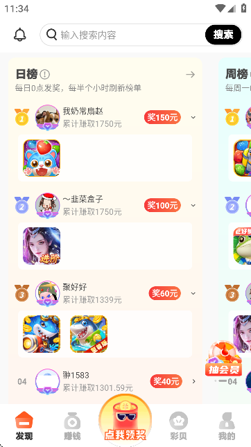 4、然后下滑可以看到更多的游戏榜单,可以帮助用户轻松找到当前热门,高赚金的游戏