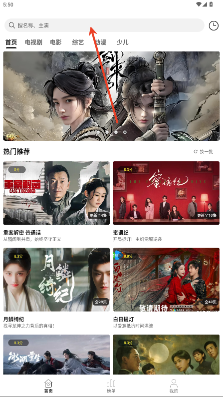 1.首页顶部搜索栏输入剧名、演员或关键词,精准查找内容。