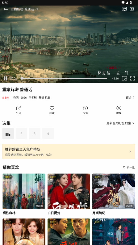 3.进入影片详情页,点击 “播放” 按钮,选择清晰度和播放源。
