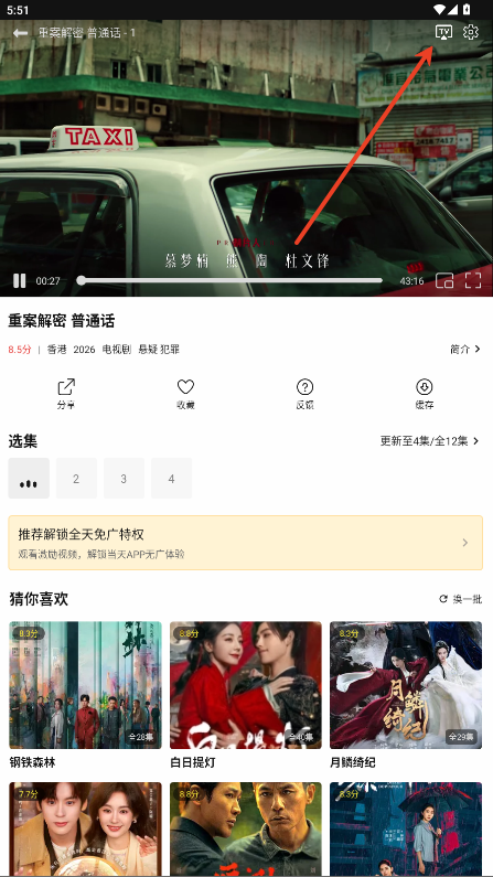5.确保手机与电视 / 盒子连接同一 Wi-Fi,播放页点击 “TV” 图标,选择设备连接。