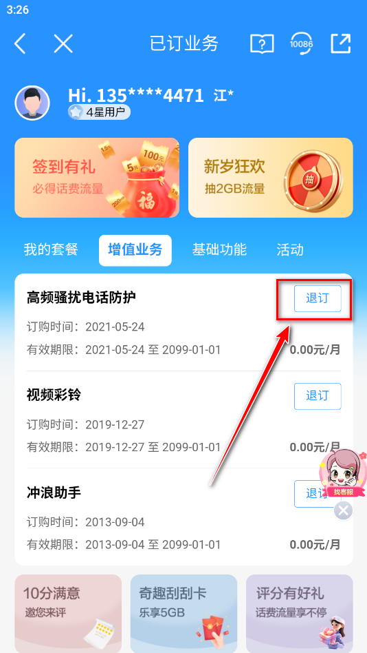 5.找到想要退订的业务,点击后面的退订按钮即可