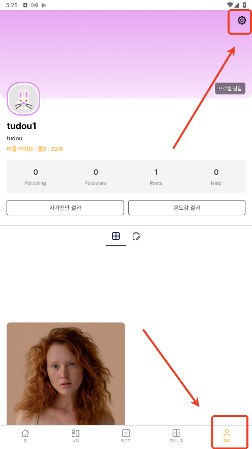 1.进入软件点击右下角的人像标志(我的)以及右上角的齿轮标志(设置)。
