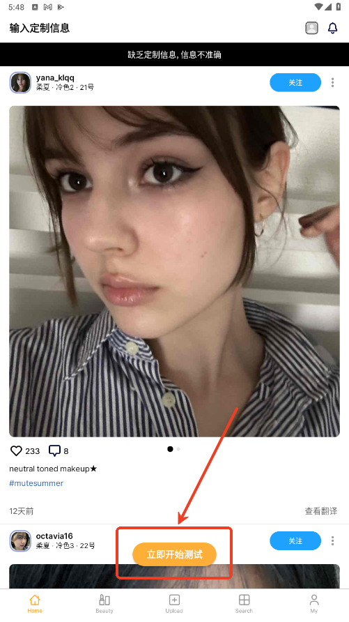 1.你需要注销以及重新注册账户后进入主页面点击立即开始测试。