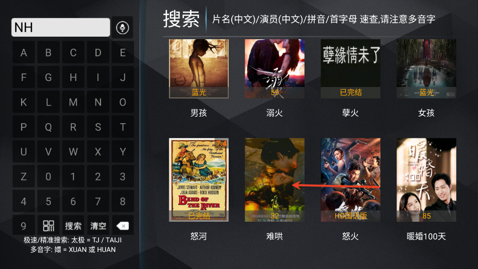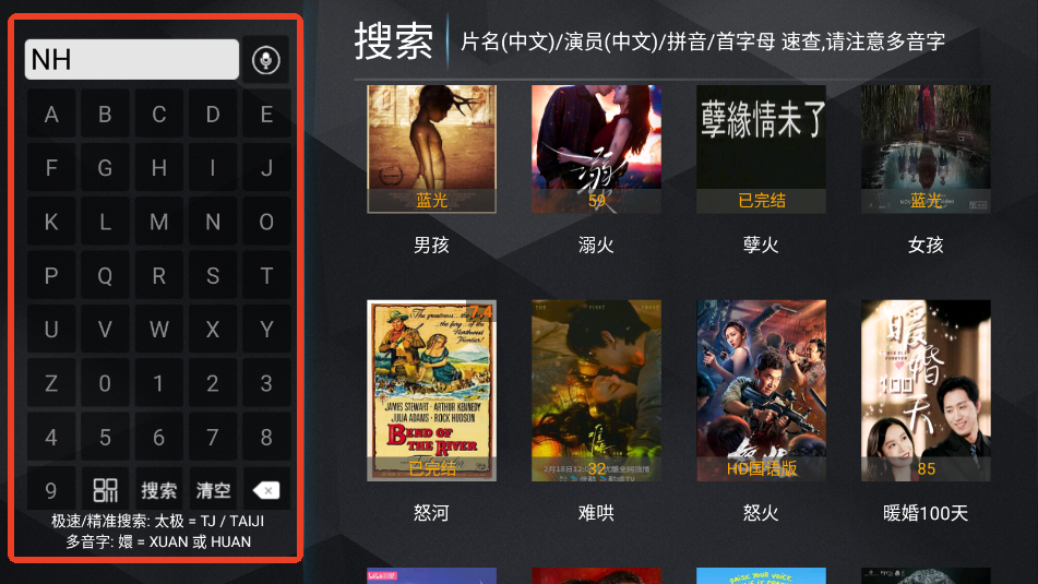 2.在左侧键盘内输入你要看的电视剧名称首字母。