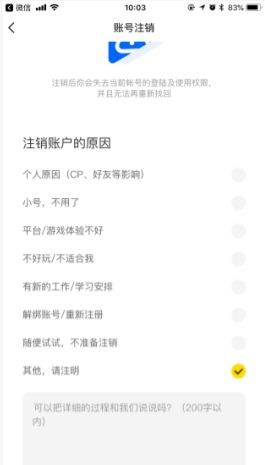 3.选择注销理由,点击注销就可以了。但是要注意的是注销后无法找回账号,也无法登录了